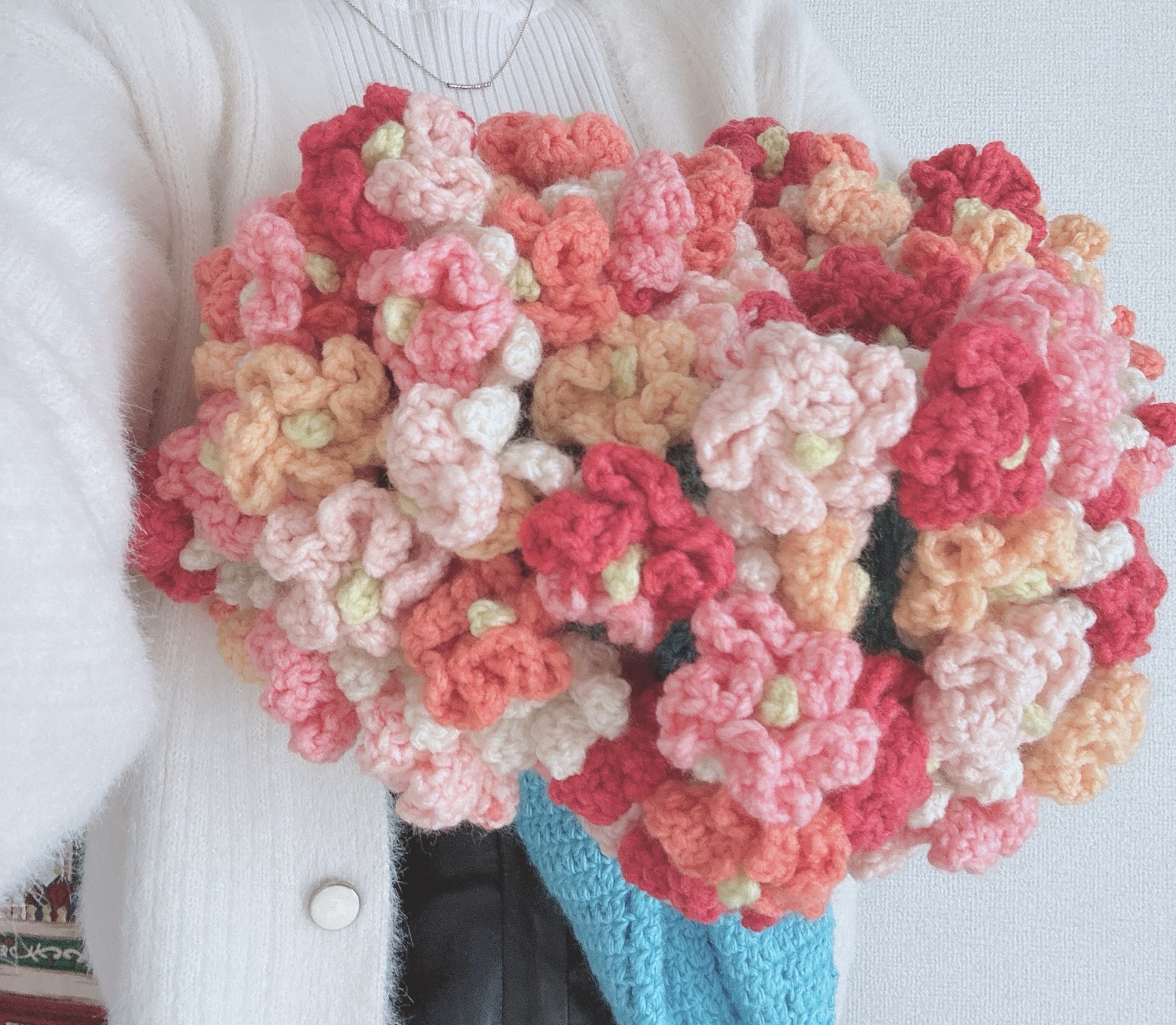 母へのプレゼントにブーケブランケットを編み始める